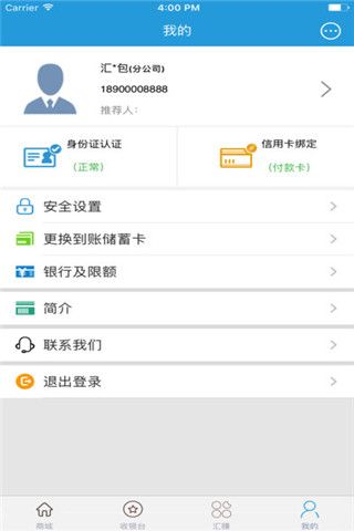 3、无卡收款功能:下载并安装汇融钱包客户端,随时随地使用无卡支付轻松完成收款;